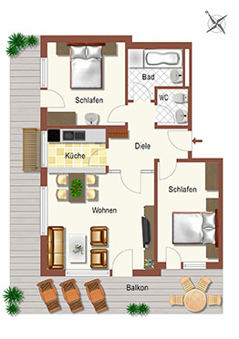 Accogliente appartamento con 3 locali per 2-5 persone da 55m2: